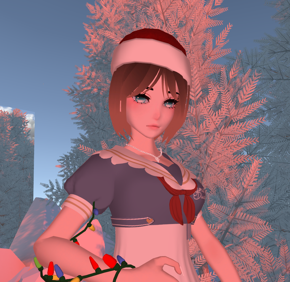 Holiday avatar Don (^__^)ย she is inspired by one of my favorite cartoon characters. The hat has dynamic bones. This is a SFW model the mesh underneath is deleted. This avatar has a few gestures.